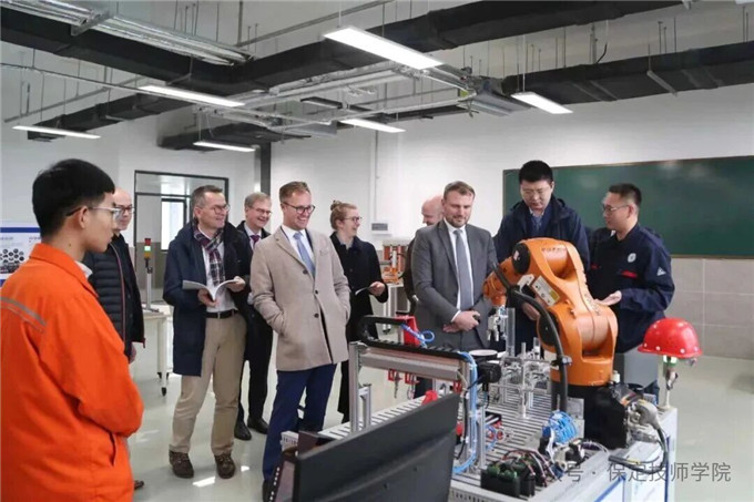 凯勒部长首先到中德(保定)工业4.0智能制造公共实训基地参观,对学院的办学规模与创新模式给予高度肯定。
