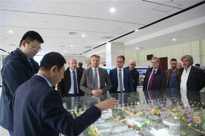 10月22日下午,德国勃兰登堡州经济、劳动、能源和气候保护部部长丹尼尔·凯勒一行莅临保定技师学院调研。保定市人社局副局长李光军、保定技师学院院长崔欣陪同。